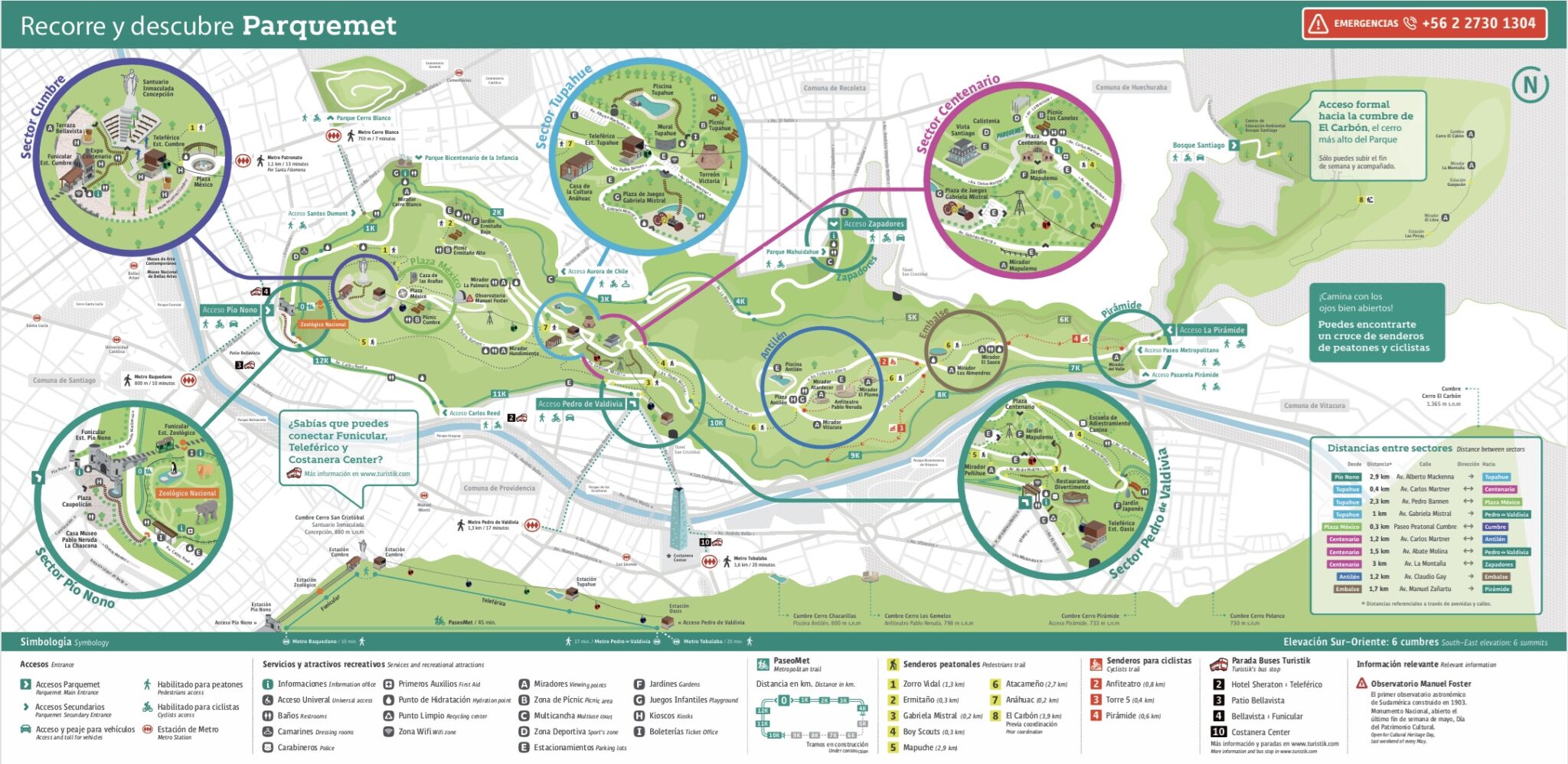 Los Buses Panorámicos abiertos de Parquemet, recorren el Cerro San Cristóbal, Parque Urbano más grande de Latinoamérica y pulmón verde de Santiago, a lo largo de 3 estaciones: Pío Nono, Tupahue y Cumbre. Estos vehículos ecológicos, que utilizan gas natural como combustible, poseen 23 asientos y espacio para una silla de ruedas que ingresa al bus a través de una plataforma eléctrica que eleva al viajero de movilidad reducida hacia el interior de éste, para su correcta ubicación.